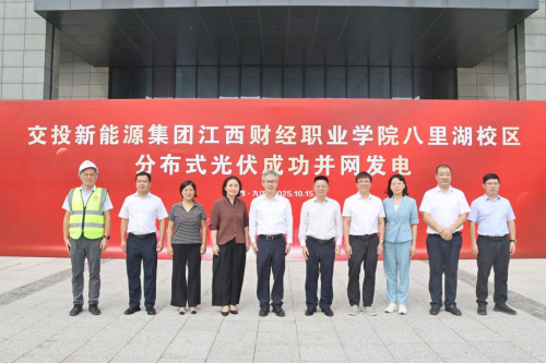 10月15日上午,江西财经职业学院八里湖校区分布式光伏电站建成并网发电。省教育厅二级巡视员雷杰华,江西财经职业学院党委书记李松志,党委副书记、校长彭慧,党委委员、副校长贺美兰,省交投新能源集团党委书记、董事长周建文,中国电建江西省电力设计院总工程师叶漫红出席仪式并致辞。学校有关部门、交投集团相关部门、交投新能源负责同志及参建单位和学校师生代表参加。