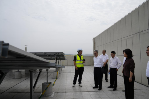 仪式结束后,大家共同参观了学校第一教学楼屋顶分布式光伏发电设施和南区光伏车棚,省教育厅二级巡视员雷杰华对省交投集团与我校的光伏发电、光伏车棚等新能源项目给予了充分肯定。